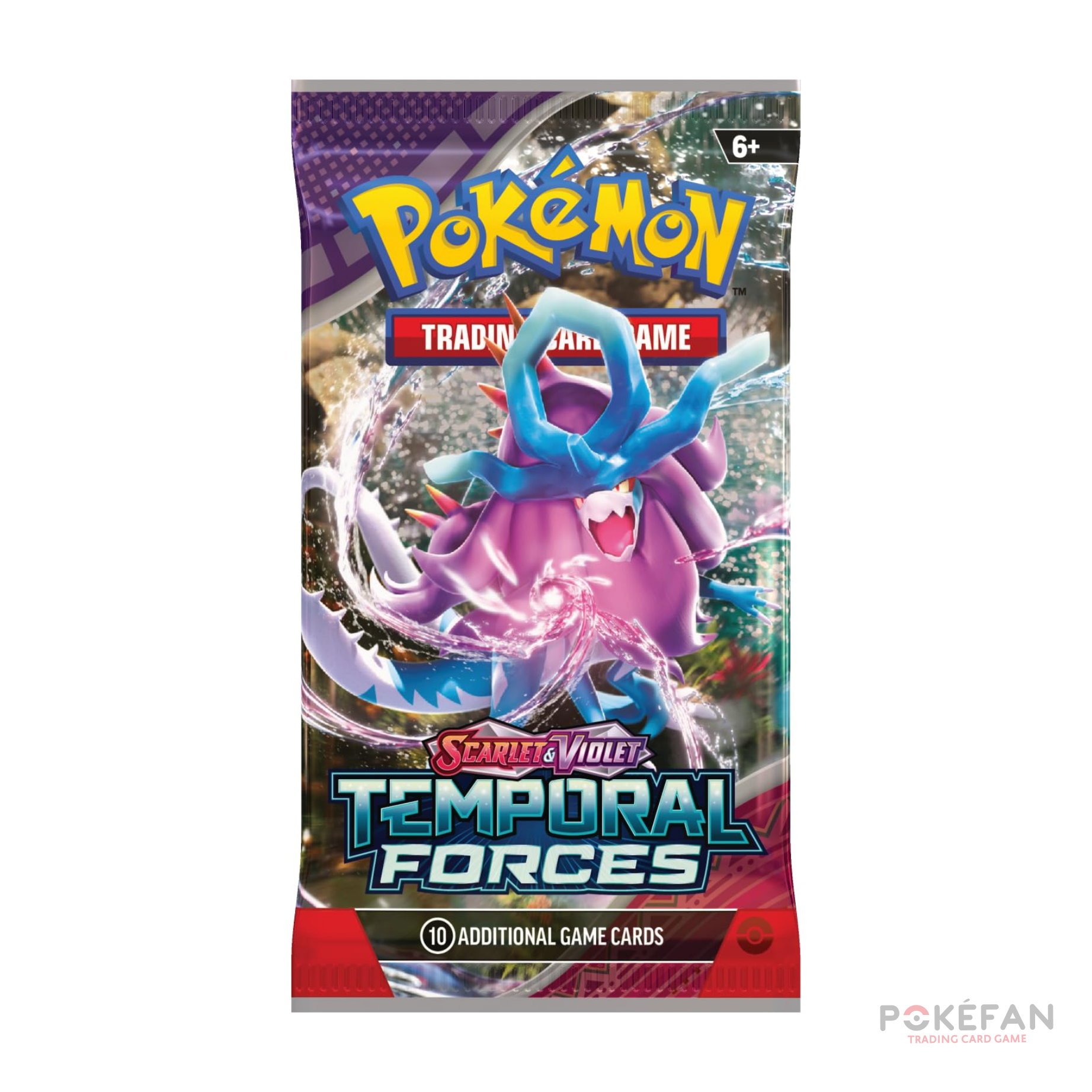 The ranks of Ancient and Future Pokémon continue to grow! Walking Wake ex breaks free of the past alongside Raging Bolt ex, while Iron Leaves ex delivers high-tech justice with Iron Crown ex. Outside Area Zero, Wugtrio and Farigiraf shift types as Tera Pokémon ex, and Pokémon Trainers everywhere prepare for the return of ACE SPEC cards with uniquely powerful effects. A rupture in time brings wild beasts and cyber visions to battle in the Pokémon TCG: Scarlet & Violet—Temporal Forces expansion!